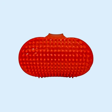 FAIRBIZPS Pet Bath Comb Massage Comb with Ring Handle Rubber Bristles Hand Brush Band Comb for Dogs & Cats (Red)