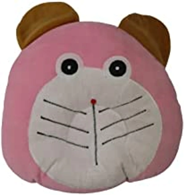 FAIRBIZPS Baby Pillow Cotton Cat Design Baby Pillow with Memory Foam for Comfort and Baby Safety (Pink and Brown)