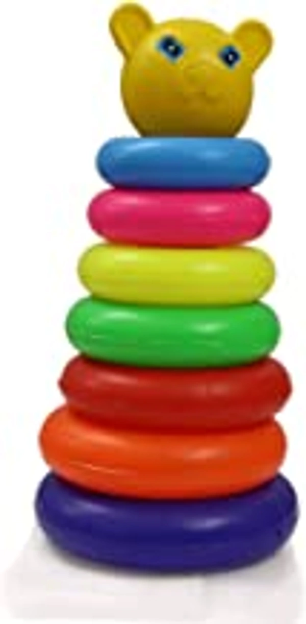 colorful stacking toy with different color rings and a fun duck to place on top. Encourages manual dexterity and hand-eye coordination as the rings are stacked on the pole. Learn about big and small, top and bottom, and the different colors of the rings. The child learns how to stack the toy according to their imagination. This also stimulates the creativity areas in the child's brain. The stack ring toys have smooth edges and a fit size that is suitable for babies to practice grasping. It can also be packed and played indoors or outdoor. And it is the best gift for children over 6 months old on birthdays.