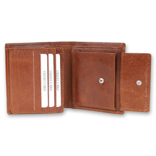 FAIRBIZPS FIPL Leather Wallets for Men, Top Grain Leather 8 Card Slots, 3 Compartments, Tri Fold Wallet
