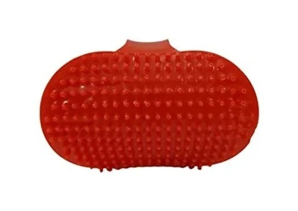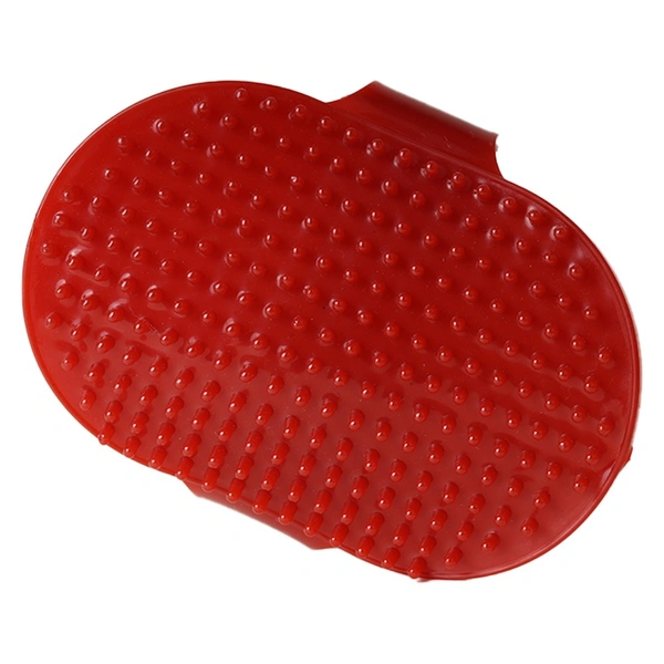 FAIRBIZPS Pet Bath Comb Massage Comb with Ring Handle Rubber Bristles Hand Brush Band Comb for Dogs & Cats (Red)