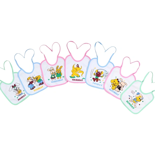 FAIRBIZPS Soft Cotton Baby Bibs Washable Waterproof 7 Days Printed Baby Bibs Apron for Baby Feeding (Pack of 7)