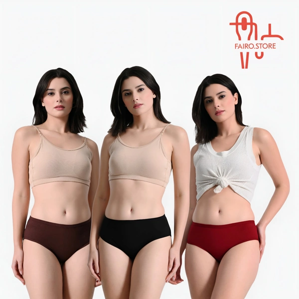 The FAIROSTORE Women's Cotton Panties Brief Pack of 3 Combo is the ideal fusion of style, durability, and comfort. This carefully constructed underwear set will elevate your everyday basics and offer a smooth, opulent experience. These panties feel soft and soothing against your skin since they are made of premium, breathable cotton fabric, which makes them perfect for all-day wear. FAIROSTORE promises a long-lasting addition to your underwear collection in addition to comfort and durability. Three fashionable and adaptable briefs are included in the bundle; they all have a traditional cut that offers complete coverage and a nice fit. You may move freely and comfortably without feeling constrained thanks to the elastic waistline. FAIROSTORE is aware of how important it is to embrace your unique style,