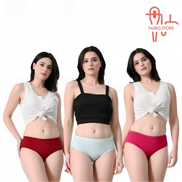 The FAIROSTORE Women's Cotton Panties Brief Pack of 3 Combo is the ideal fusion of style, durability, and comfort. This carefully constructed underwear set will elevate your everyday basics and offer a smooth, opulent experience. These panties feel soft and soothing against your skin since they are made of premium, breathable cotton fabric, which makes them perfect for all-day wear. FAIROSTORE promises a long-lasting addition to your underwear collection in addition to comfort and durability. Three fashionable and adaptable briefs are included in the bundle; they all have a traditional cut that offers complete coverage and a nice fit. You may move freely and comfortably without feeling constrained thanks to the elastic waistline. FAIROSTORE is aware of how important it is to embrace your unique style,