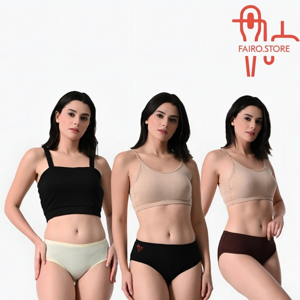 The FAIROSTORE Women's Cotton Panties Brief Pack of 3 Combo is the ideal fusion of style, durability, and comfort. This carefully constructed underwear set will elevate your everyday basics and offer a smooth, opulent experience. These panties feel soft and soothing against your skin since they are made of premium, breathable cotton fabric, which makes them perfect for all-day wear. FAIROSTORE promises a long-lasting addition to your underwear collection in addition to comfort and durability. Three fashionable and adaptable briefs are included in the bundle; they all have a traditional cut that offers complete coverage and a nice fit. You may move freely and comfortably without feeling constrained thanks to the elastic waistline. FAIROSTORE is aware of how important it is to embrace your unique style,